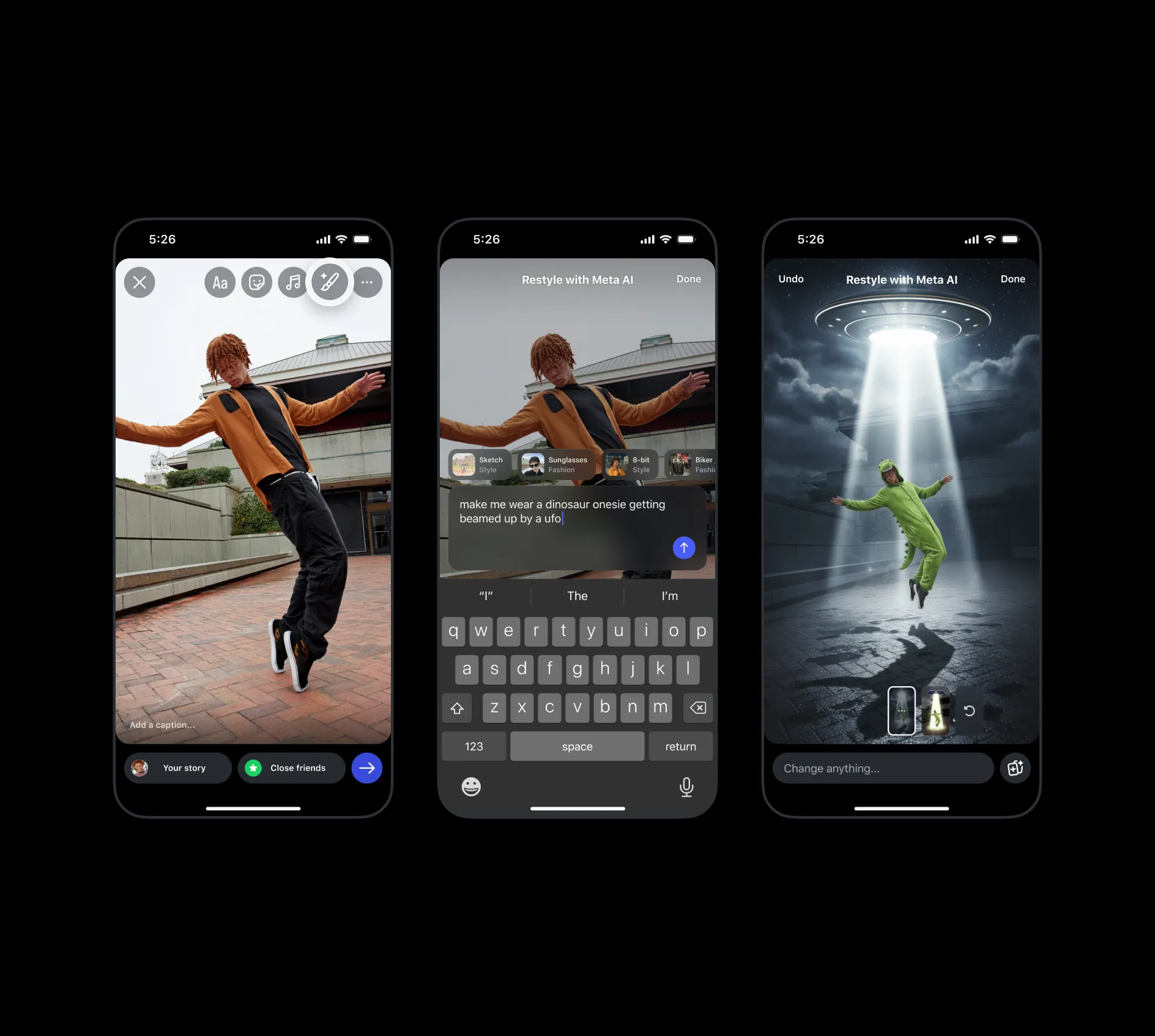 - خلاقیت نامحدود: فیلترهای قدیمی محدود به افکتهای از پیش تعیین شده بودند، اما AI Restyle با استفاده از هوش مصنوعی متا، هر بار نتیجهای منحصر به فرد خلق میکند.